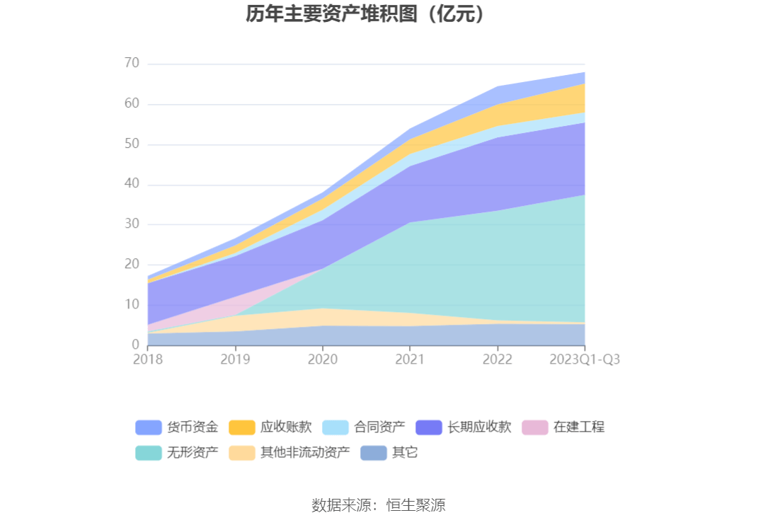 资产重大变化方面,截至2023年三季度末,公司无形资产较上年末增加16.46%,占公司总资产比重上升4.40个百分点;货币资金较上年末减少36.16%,占公司总资产比重下降2.75个百分点;应收账款较上年末增加33.18%,占公司总资产比重上升2.19个百分点;长期应收款较上年末减少1.53%,占公司总资产比重下降1.87个百分点。