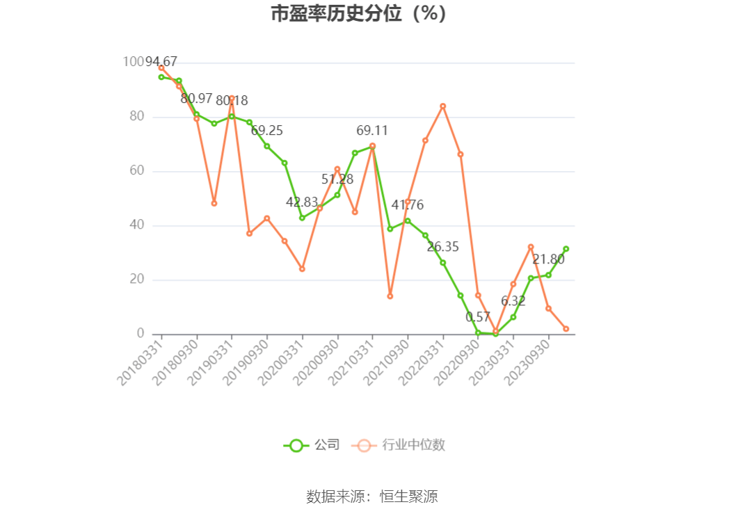 市盈率为负时,不显示当期分位数,会导致折线图中断。