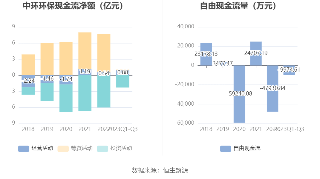 进一步统计发现,2023年前三季度公司自由现金流为-9974.61万元,上年同期为-93167.78万元。