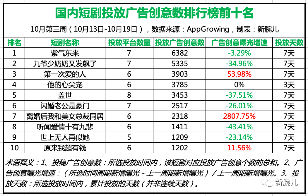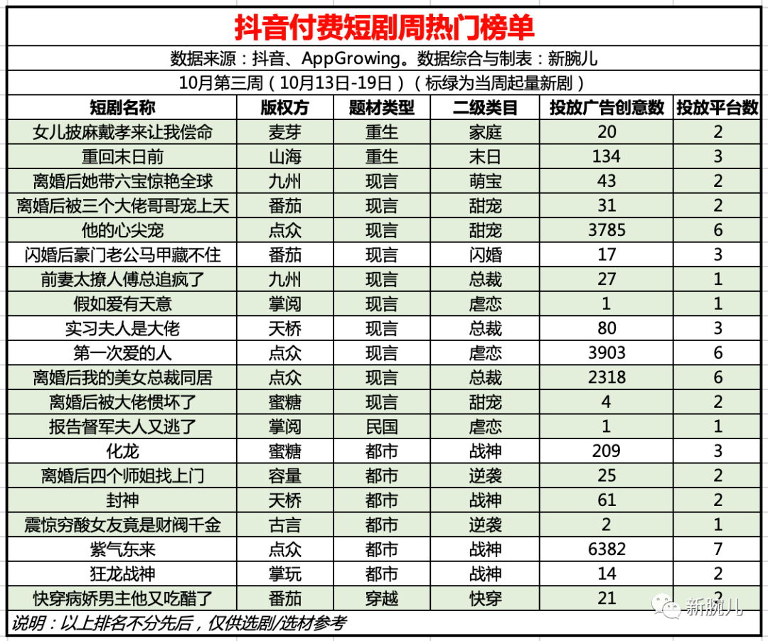 新腕儿解读当周短剧大数据:1、数据并非自然周数据,原始数据如此。