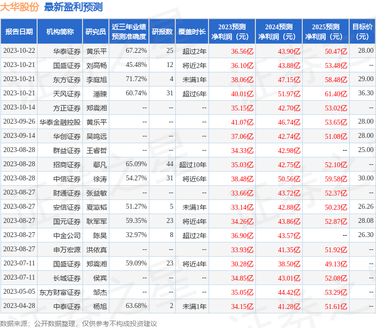 以下是详细的盈利预测信息: