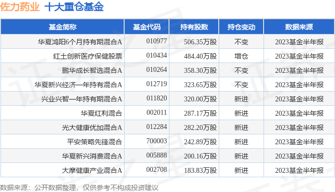 持有佐力药业最多的基金为华夏鸿阳6个月持有期混合A,目前规模为24.31亿元,最新净值0.5683(10月20日),较上一交易日下跌1.32%,近一年下跌6.28%。该基金现任基金经理为孙轶佳 张景松。