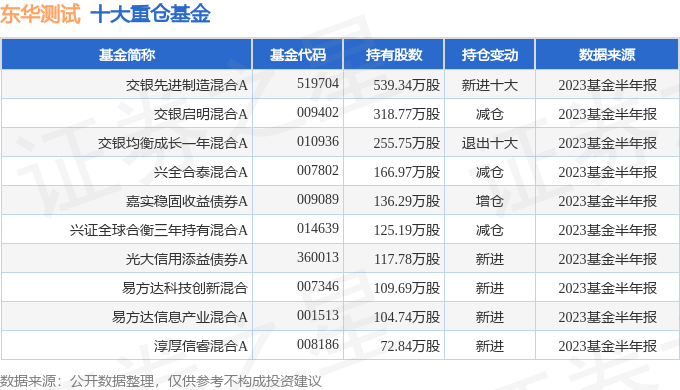重仓东华测试的前十大基金见下表: