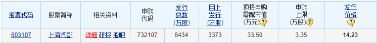 10月23日,新股打新市场迎来上海汽配(603107)在沪市主板的发行申购。它在网上发行3373万股,顶格申购需配沪市股票市值33.50万元。