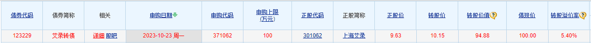 10月23日,可转债打新市场迎来上海艾录(301062)发行的可转债——艾录转债。它的发行规模为5亿元,规模偏小。债券评级为A+,评级较高。