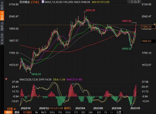汇通财经APP讯——周五(10月20日),由于投资者在动荡中寻求避险资产,金价四连跳,触及的三个月新高,为 7 月下旬以来的最高水平。中东形势不定,投资者在周末表现出强烈的避险情绪,为了减少投资损失,投资者转为更稳妥的贵金属,以作为投资工具。