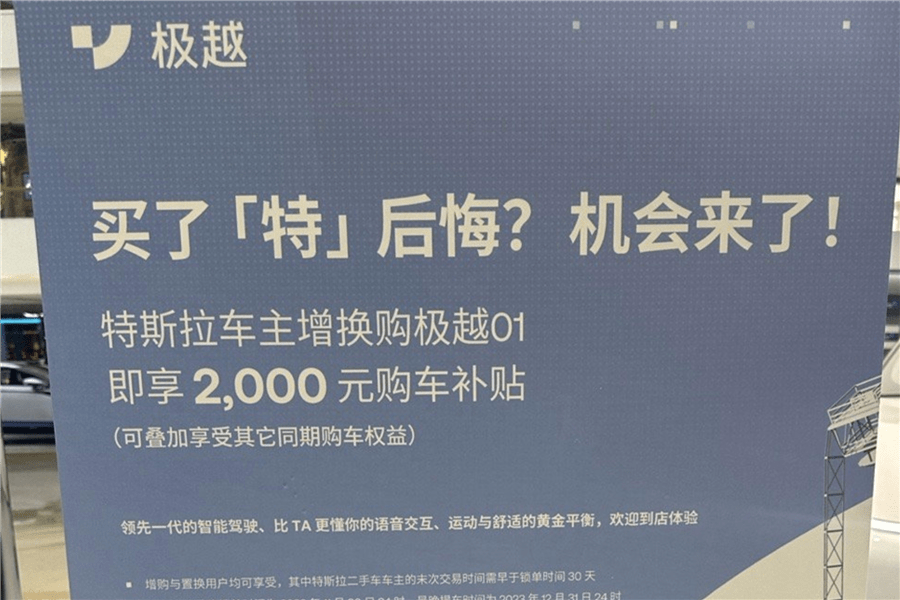 最后是在中国新能源市场中,特斯拉Model 3/Y销量排名前列,就容易总被各大自主品牌对标,并且情况愈演愈烈,它们不只在车型上竞争,更是将目标瞄准特斯拉的老车主。比如最近极越推出了特斯拉车主增换购01即享2000元购车补贴的福利。