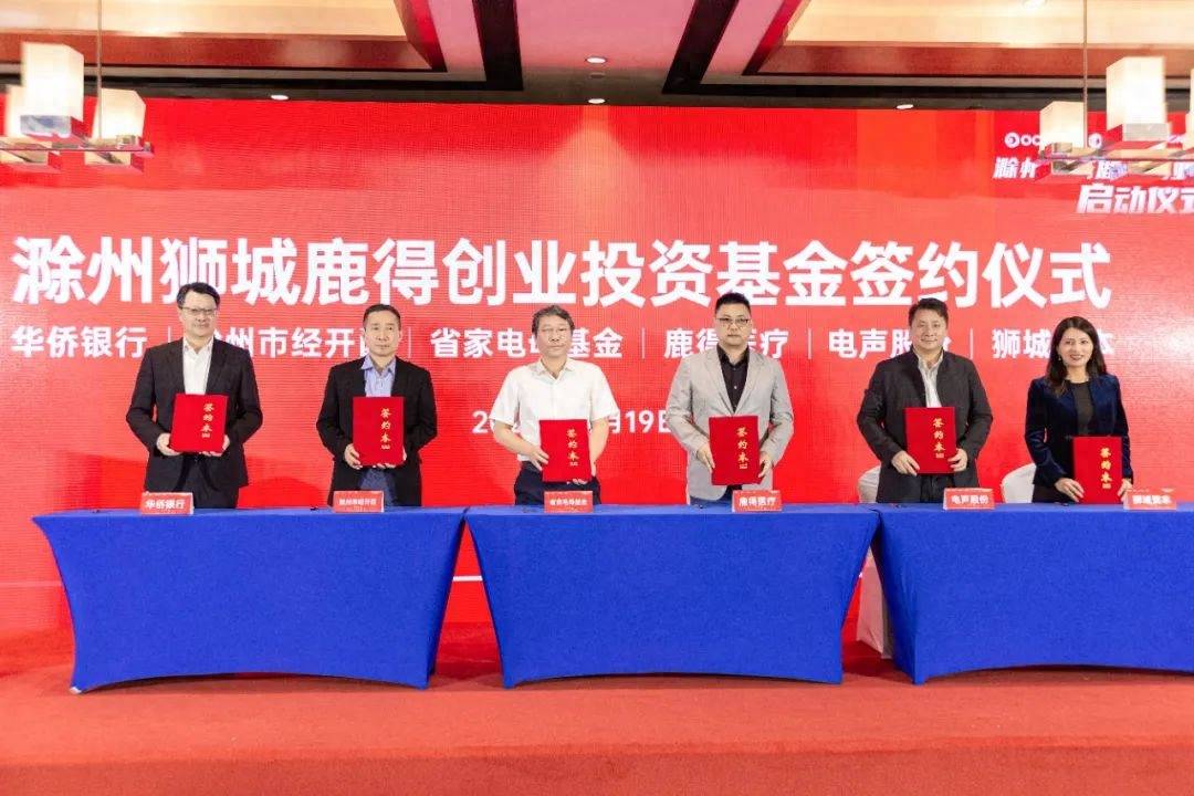 10月19日下午,滁州狮城鹿得创业投资基金启动仪式在滁州举办。华侨银行、滁州经开区、安徽省家电母基金、鹿得医疗、电声股份、狮城资本共同签署合作备忘录,标志着滁州狮城鹿得创业投资基金正式落地经开。