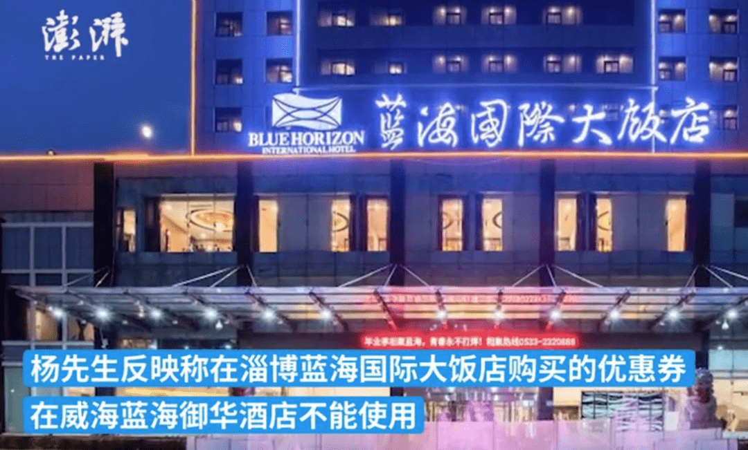 不止员工和供应商,消费者也有负面反馈。去年,据澎湃新闻消息,有顾客称购买优惠券被欺诈“旗下酒店均可用”,而蓝海集团却表示部分酒店不能用。