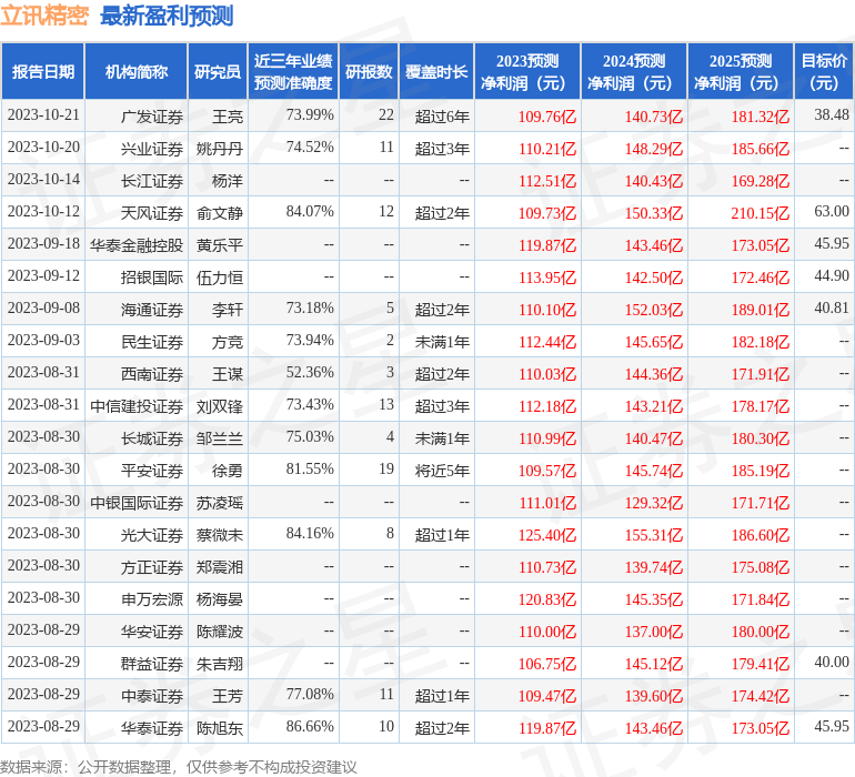 以下是详细的盈利预测信息: