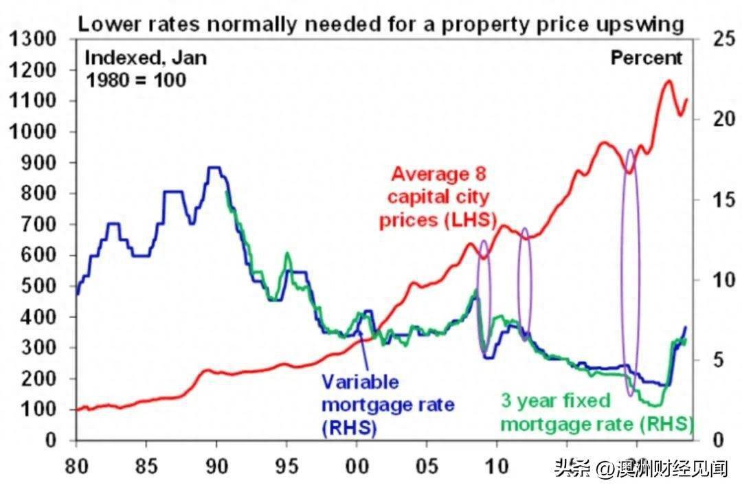 从历史的角度来看,房价每次从下跌中反弹时,澳大利亚央行都在进行降息。