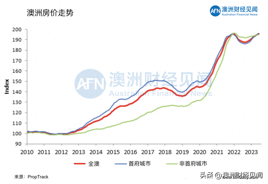 PropTrack的房价指数显示,澳洲房市已经完全收复了澳大利亚央行加息4.0%造成的影响。