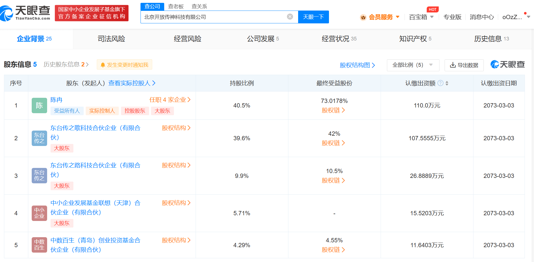 天眼查App显示,近日,OpenCSG关联公司北京开放传神科技有限公司发生工商变更,新增中小企业发展基金联想(天津)合伙企业(有限合伙)为股东,同时公司注册资本由约256万人民币增至约272万人民币。