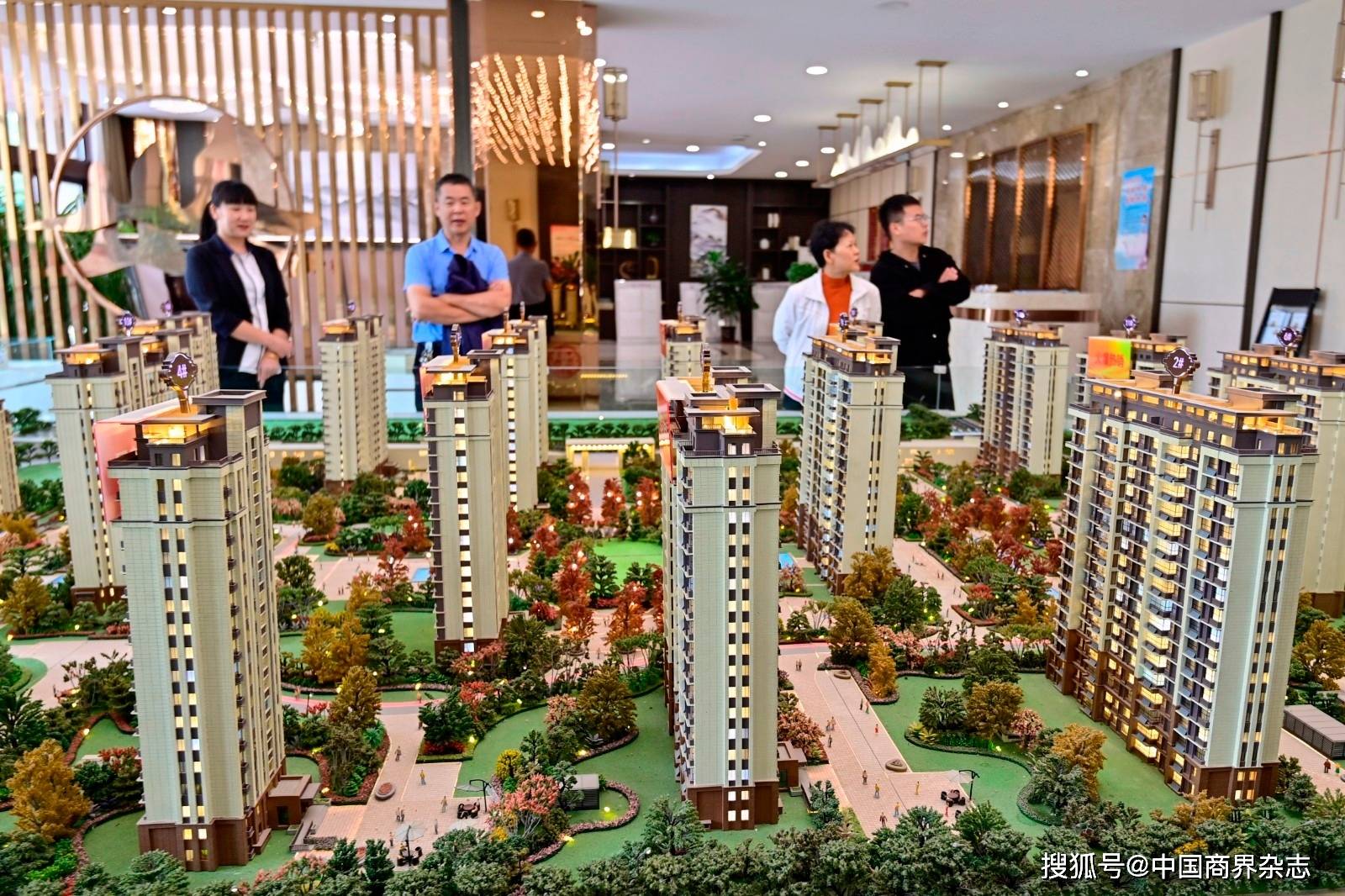 市民在山东省青州市一处商品楼盘售楼处观看沙盘。(图片由CNSPHOTO提供)