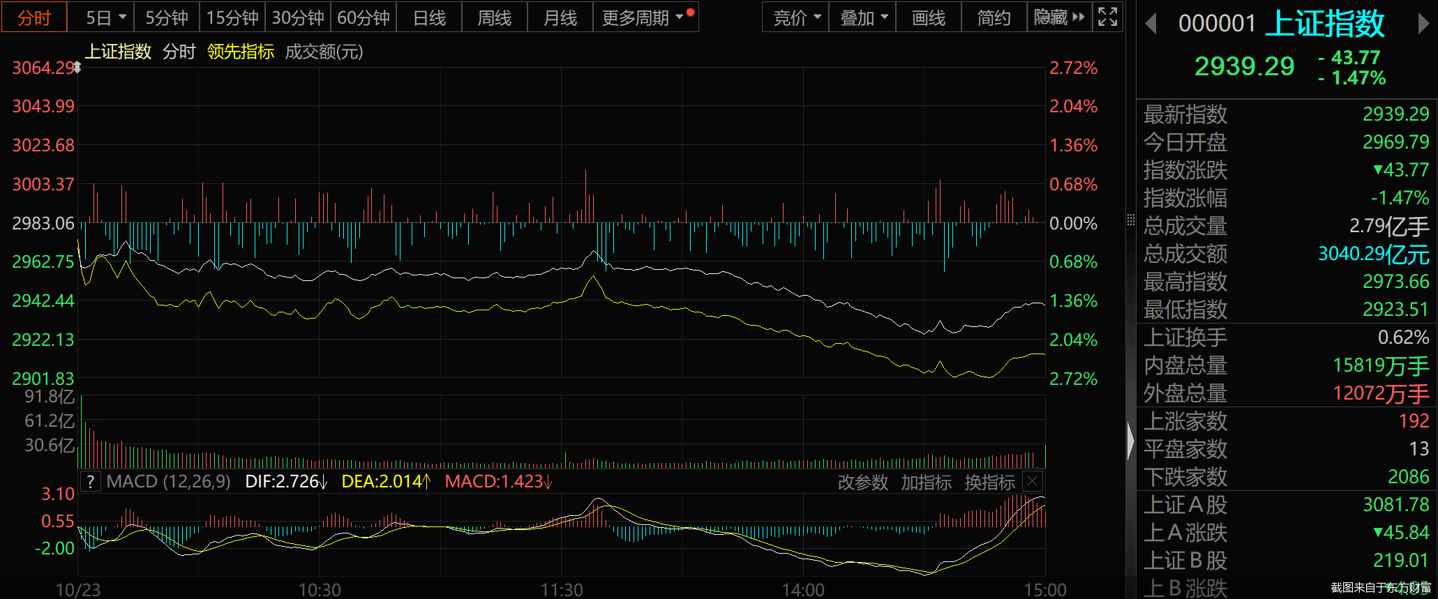 北京商报讯(记者 丁宁)10月23日,A股三大指数续创年内新低,盘中均一度跌逾2%。截至收盘,沪指收跌1.47%;深证成指收跌1.51%;创业板指收跌1.69%。