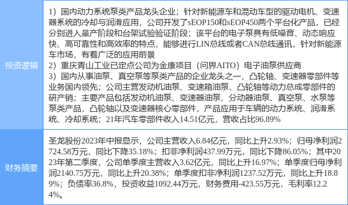 证券之星消息,圣龙股份涨停收盘,收盘价34.44元。该股于9点32分涨停,1次打开涨停,截止收盘封单资金为1.43亿元,占其流通市值1.75%。