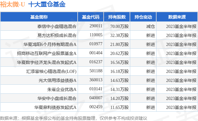 重仓裕太微-U的前十大公募基金请见下表:
