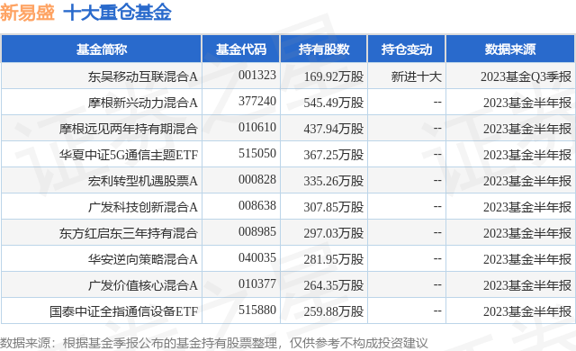 根据2023基金Q3季报公募基金重仓股数据,重仓该股的公募基金共1家,其中持有数量最多的公募基金为东吴移动互联混合A。东吴移动互联混合A目前规模为3.11亿元,最新净值2.2589(10月20日),较上一交易日下跌2.12%,近一年上涨28.49%。该公募基金现任基金经理为刘元海。刘元海在任的基金产品包括:东吴新趋势价值线混合,管理时间为2019年4月29日至今,期间收益率为147.95%;东吴新能源汽车股票A,管理时间为2022年1月25日至今,期间收益率为-1.35%;东吴嘉禾优势精选混合A,管理时间为2023年8月15日至今,期间收益率为-13.64%。