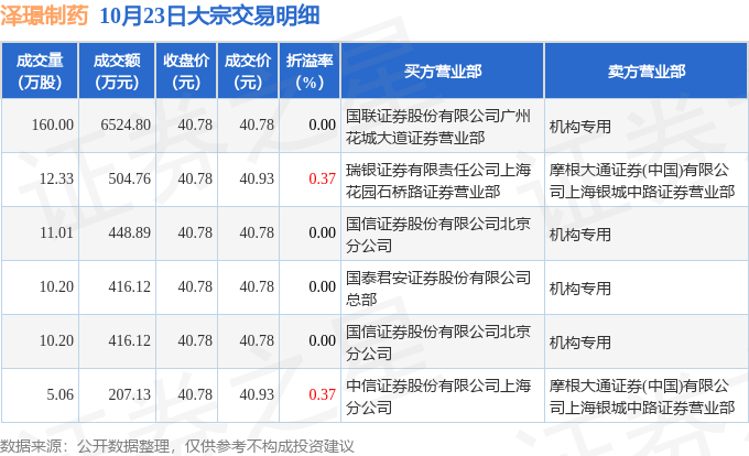 证券之星消息,10月23日泽璟制药发生大宗交易,交易数据如下: