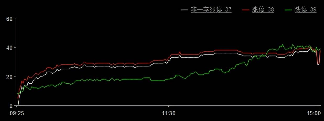 今日涨停38家,跌停.39家;