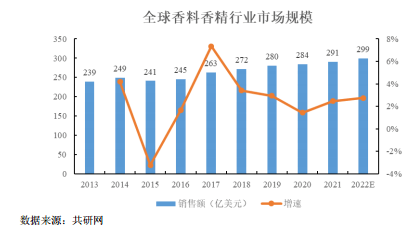 根据共研网相关数据显示,2016年以来,随着消费者对日化等产品品质要求不断提高,行业销售情况逐渐回暖。2016年至2021年,全球香料香精市场年复合增长率为3.5%,呈稳定增长趋势。