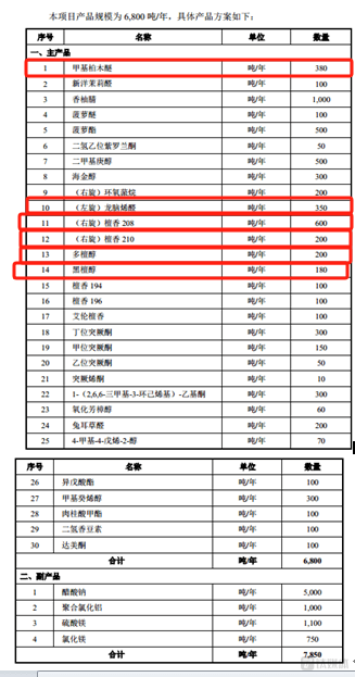 而上述年产6800吨高级香料的募投项目建设完成后,格林生物具体新增产品的产能如下: