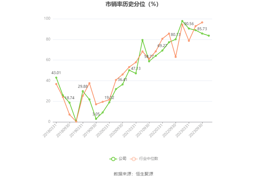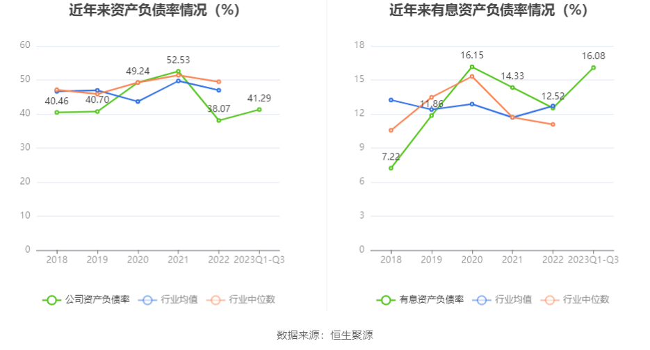 在偿债能力方面,公司2023年三季度末资产负债率为41.29%,相比上年末上升2.50个百分点;有息资产负债率为16.08%,相比上年末上升3.56个百分点。