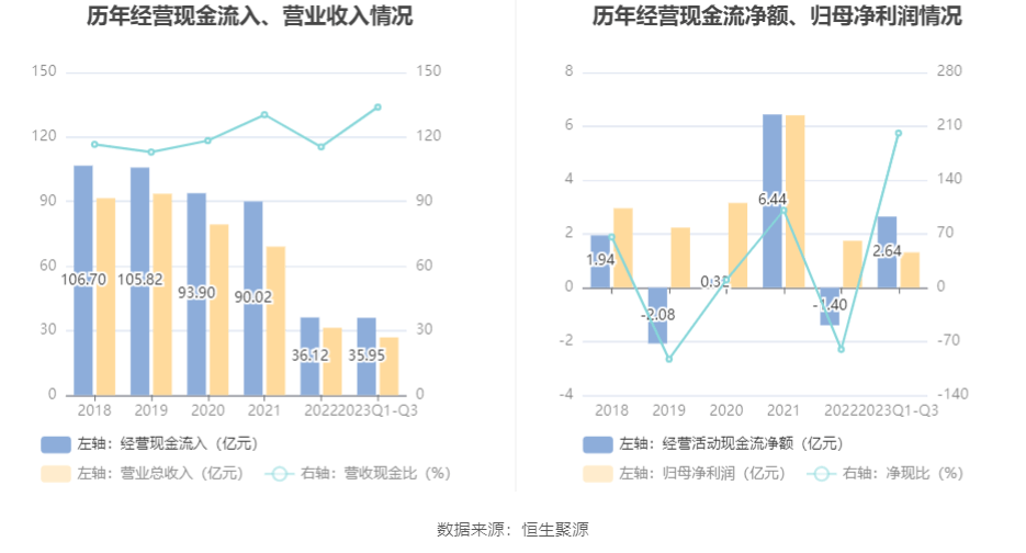 2023年前三季度,公司营业收入现金比为133.91%,净现比为201.05%。