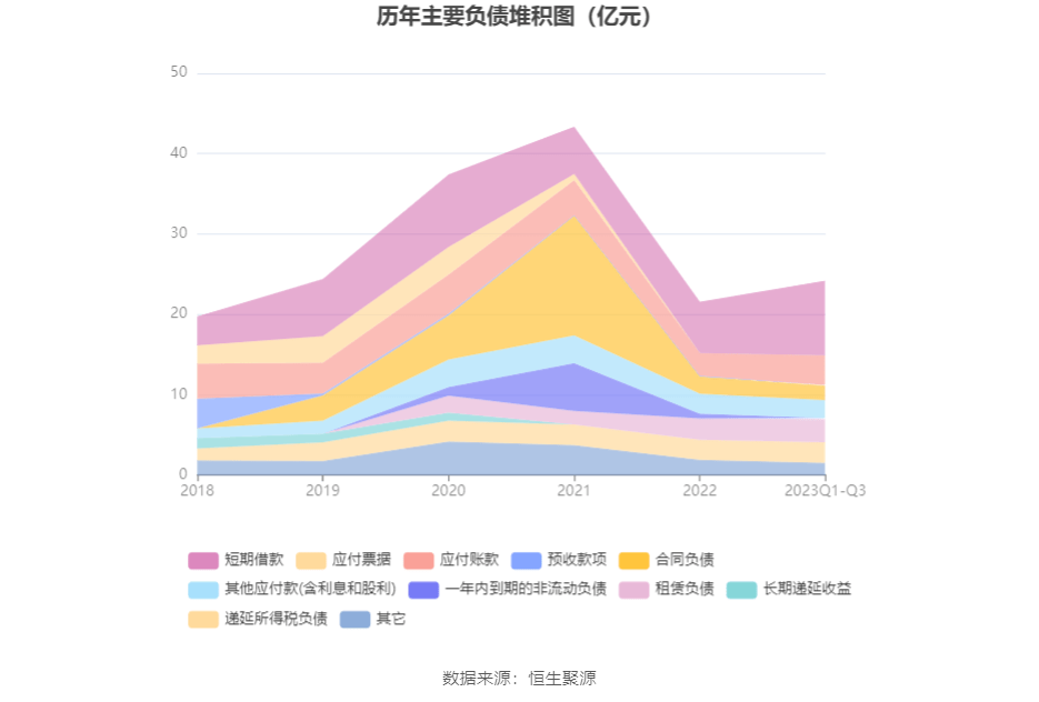负债重大变化方面,截至2023年三季度末,公司短期借款较上年末增加45.85%,占公司总资产比重上升4.40个百分点;应付账款较上年末增加30.32%,占公司总资产比重上升1.21个百分点;一年内到期的非流动负债较上年末减少78.81%,占公司总资产比重下降0.85个百分点;合同负债较上年末减少16.76%,占公司总资产比重下降0.81个百分点。