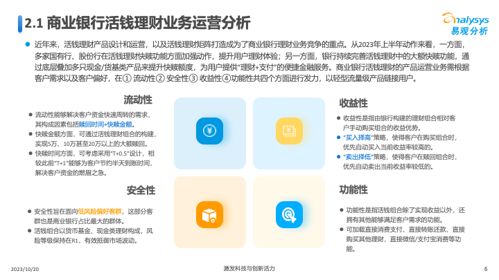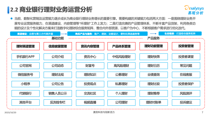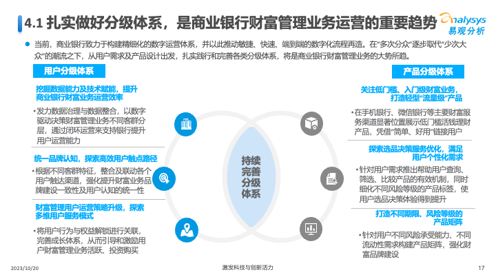 因此,商业银行需强化“以客户为中心”的理念,从客户需求出发,挖掘真正与客户适配的产品及服务。同时从卖出产品向留住客户持续发力和转型,不断丰富货架,为客户提供更加全面、专业、差异化的财富管理服务。