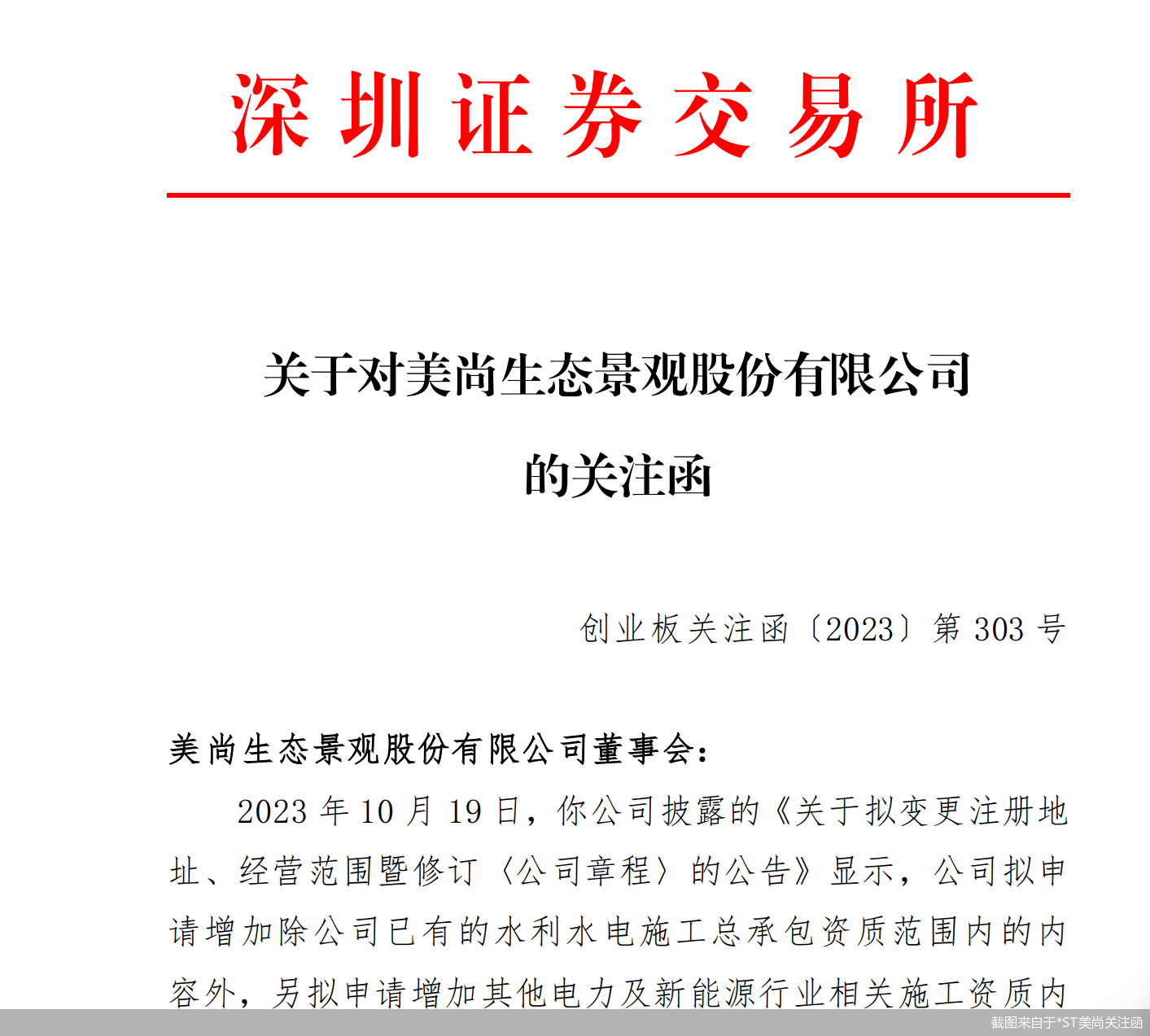 *ST美尚拟新增业务范围的情况也受到了监管层的质疑。10月23日,深交所向公司下发了关注函,要求公司结合电力及新能源施工业务的业务模式、行业竞争格局、市场前景、生产经营条件等,说明公司新增业务与现有主营业务的关系,增加经营范围的原因及必要性。