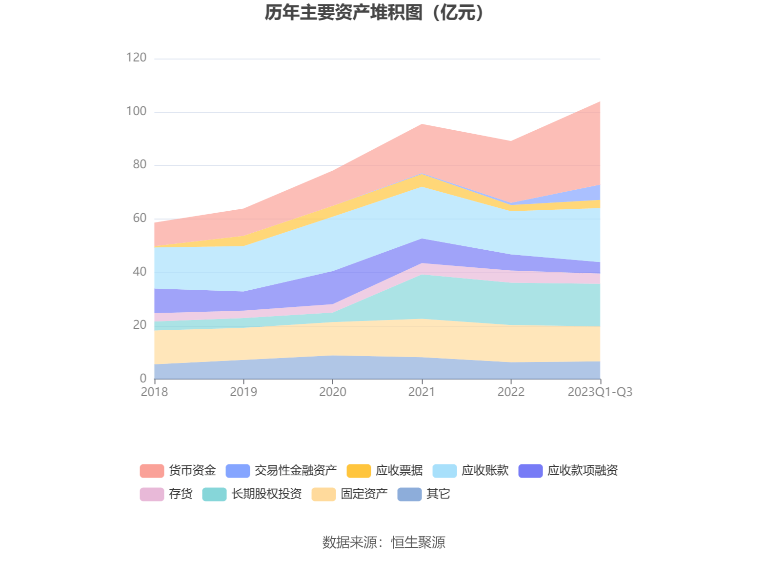 资产重大变化方面,截至2023年三季度末,公司交易性金融资产较上年末增加612.50%,占公司总资产比重上升4.58个百分点;货币资金较上年末增加34.62%,占公司总资产比重上升4.00个百分点;固定资产较上年末减少5.76%,占公司总资产比重下降2.99个百分点;应收款项融资较上年末减少28.63%,占公司总资产比重下降2.62个百分点。
