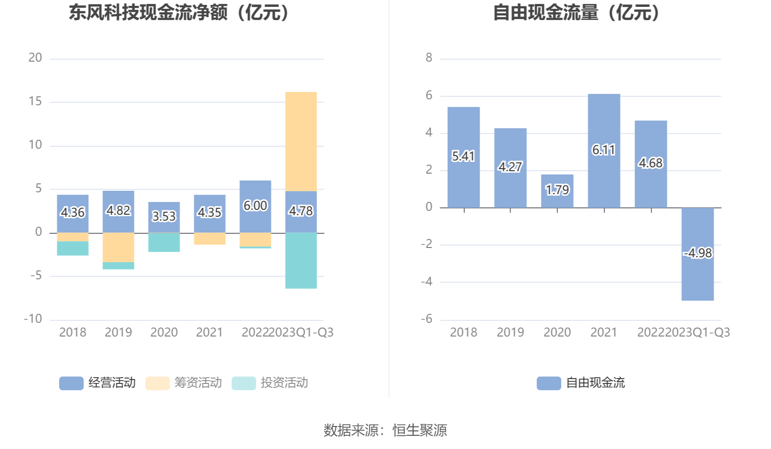 进一步统计发现,2023年前三季度公司自由现金流为-4.98亿元,上年同期为-3.32亿元。