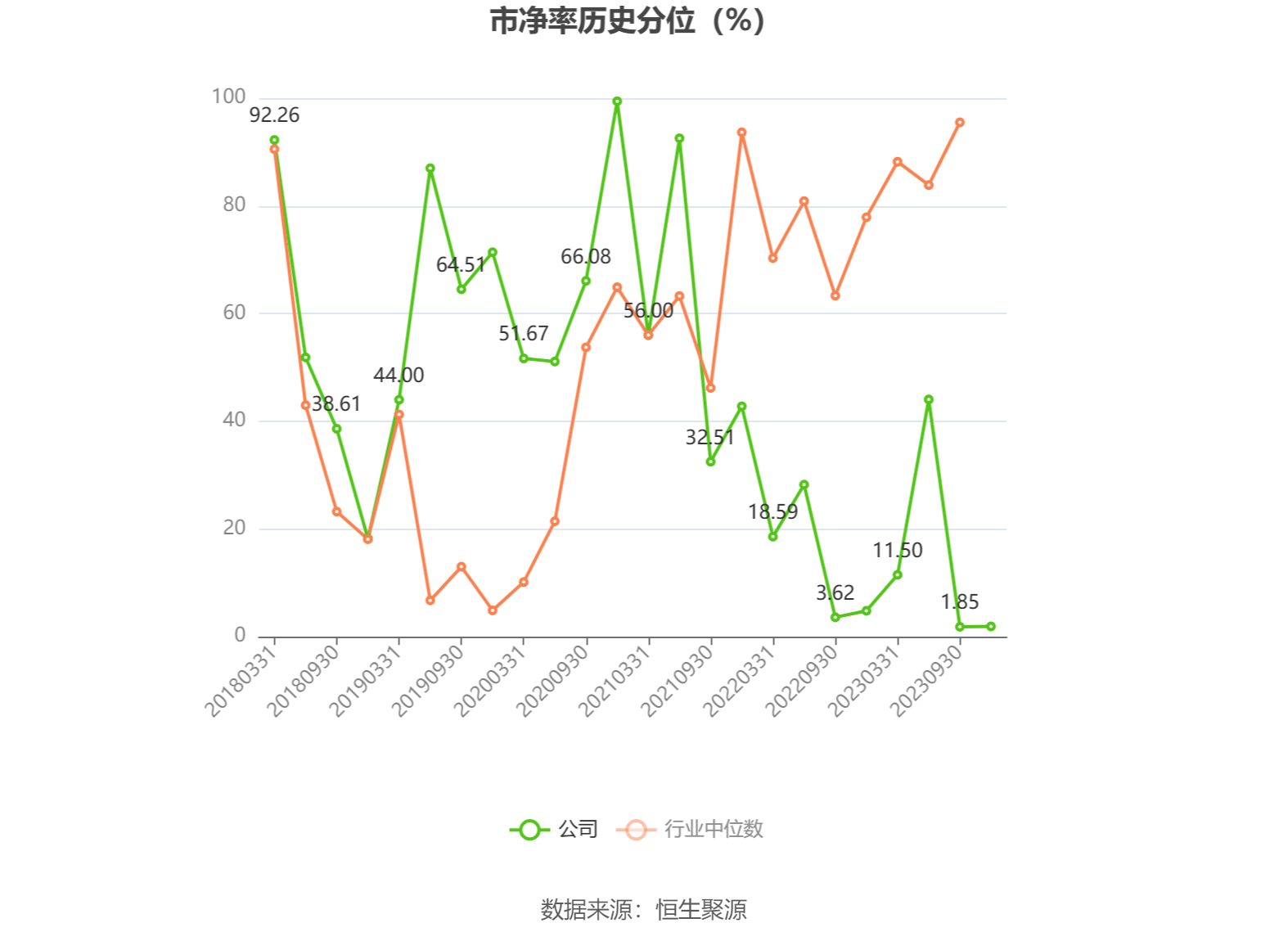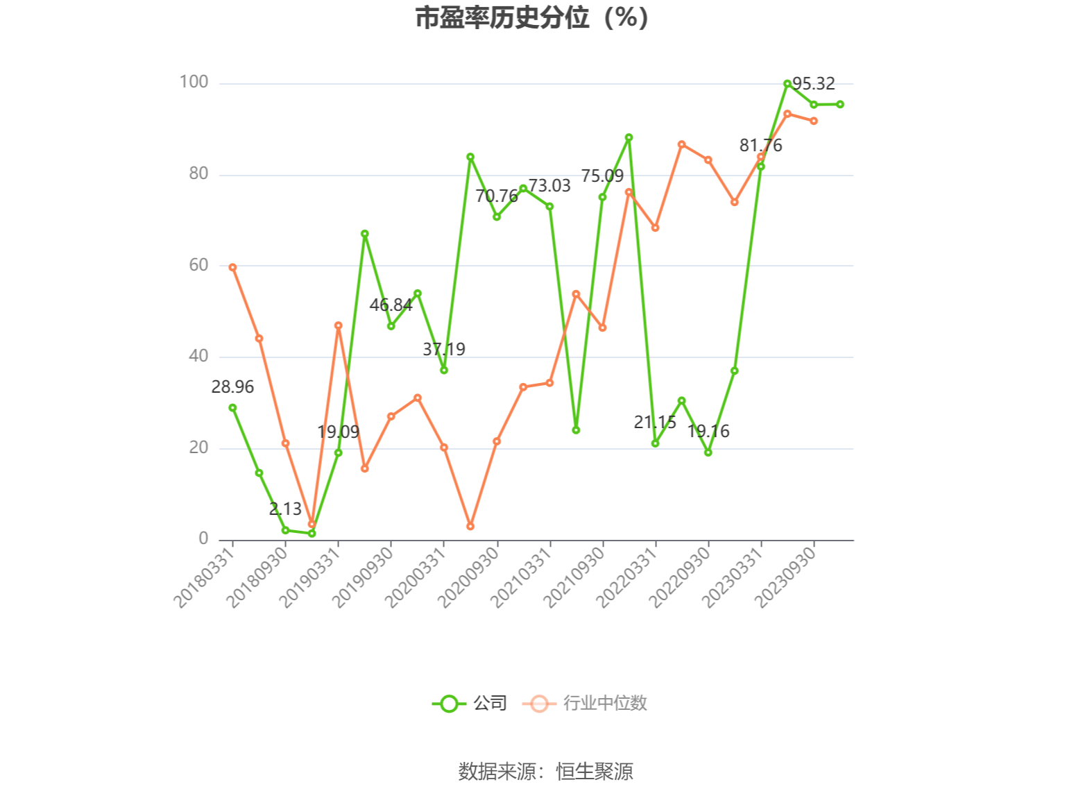 市盈率为负时,不显示当期分位数,会导致折线图中断。