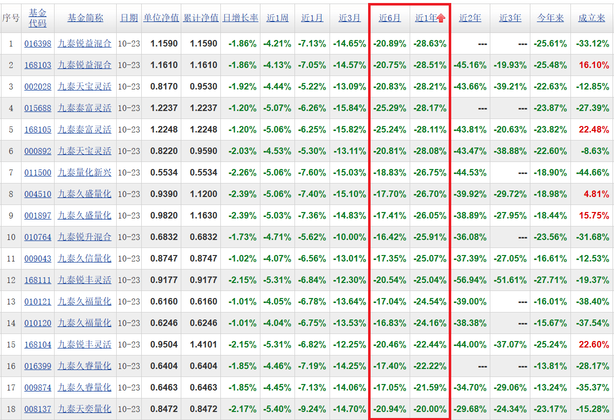 从近6个月和1年业绩来看,九泰基金的开放式基金产品业绩几乎都是负的,这显示九泰基金产品整体盈利能力较弱。