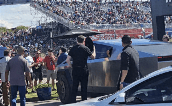 特斯拉Cybertruck成显眼包!马斯克带儿子看F1比赛被拍下