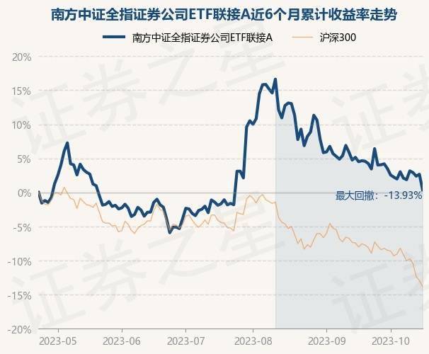证券之星消息,10月23日,南方中证全指证券公司ETF联接A最新单位净值为0.973元,累计净值为0.973元,较前一交易日下跌2.23%。历史数据显示该基金近1个月下跌5.69%,近3个月上涨2.0%,近6个月上涨0.34%,近1年上涨8.75%。该基金近6个月的累计收益率走势如下图: