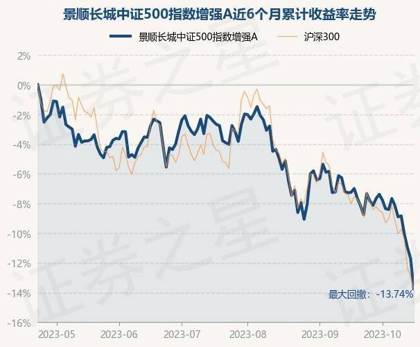 证券之星消息,10月23日,景顺长城中证500指数增强A最新单位净值为1.2087元,累计净值为1.2087元,较前一交易日下跌2.31%。历史数据显示该基金近1个月下跌6.92%,近3个月下跌10.23%,近6个月下跌13.74%,近1年下跌15.92%。该基金近6个月的累计收益率走势如下图: