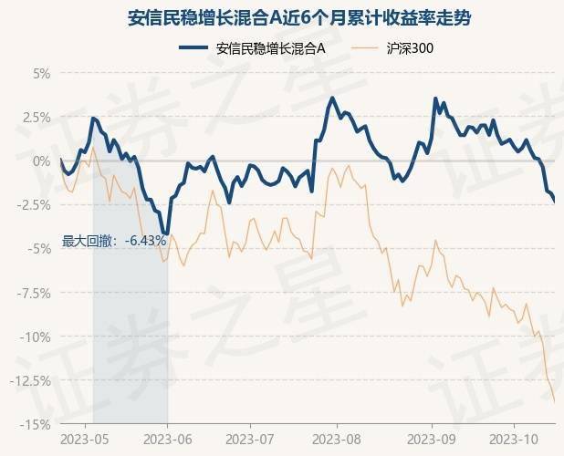 证券之星消息,10月23日,安信民稳增长混合A最新单位净值为1.2918元,累计净值为1.3428元,较前一交易日下跌0.44%。历史数据显示该基金近1个月下跌4.5%,近3个月下跌1.74%,近6个月下跌2.35%,近1年上涨2.35%。该基金近6个月的累计收益率走势如下图: