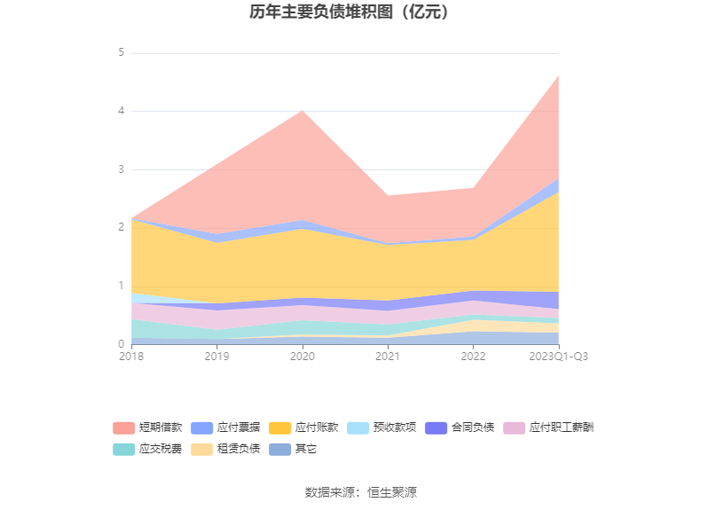 负债重大变化方面,截至2023年三季度末,公司短期借款较上年末增加111.82%,占公司总资产比重上升5.33个百分点;应付账款较上年末增加95.45%,占公司总资产比重上升4.62个百分点;应付票据较上年末增加298.81%,占公司总资产比重上升1.16个百分点;合同负债较上年末增加70.57%,占公司总资产比重上升0.62个百分点。