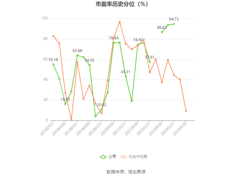 市盈率为负时,不显示当期分位数,会导致折线图中断。