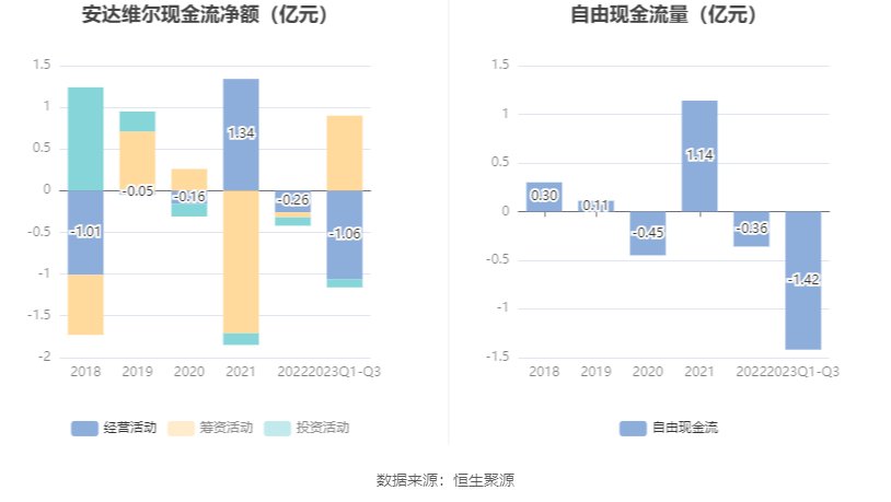 进一步统计发现,2023年前三季度公司自由现金流为-1.42亿元,上年同期为-1.18亿元。