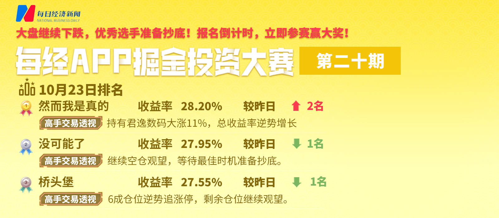 “零投入模拟炒股,正收益即可获奖”,每经APP掘金投资大赛进行中,敬请关注。