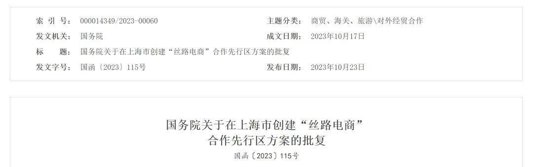 日前,国务院印发《关于在上海市创建“丝路电商”合作先行区方案的批复》,同意在上海市开展“丝路电商”合作先行区创建工作。批复指出,要发挥上海在改革开放中的突破攻坚作用,鼓励先行先试,对接国际高标准经贸规则,扩大电子商务领域对外开放,打造数字经济国际合作新高地,在服务共建“一带一路”高质量发展中发挥重要作用。