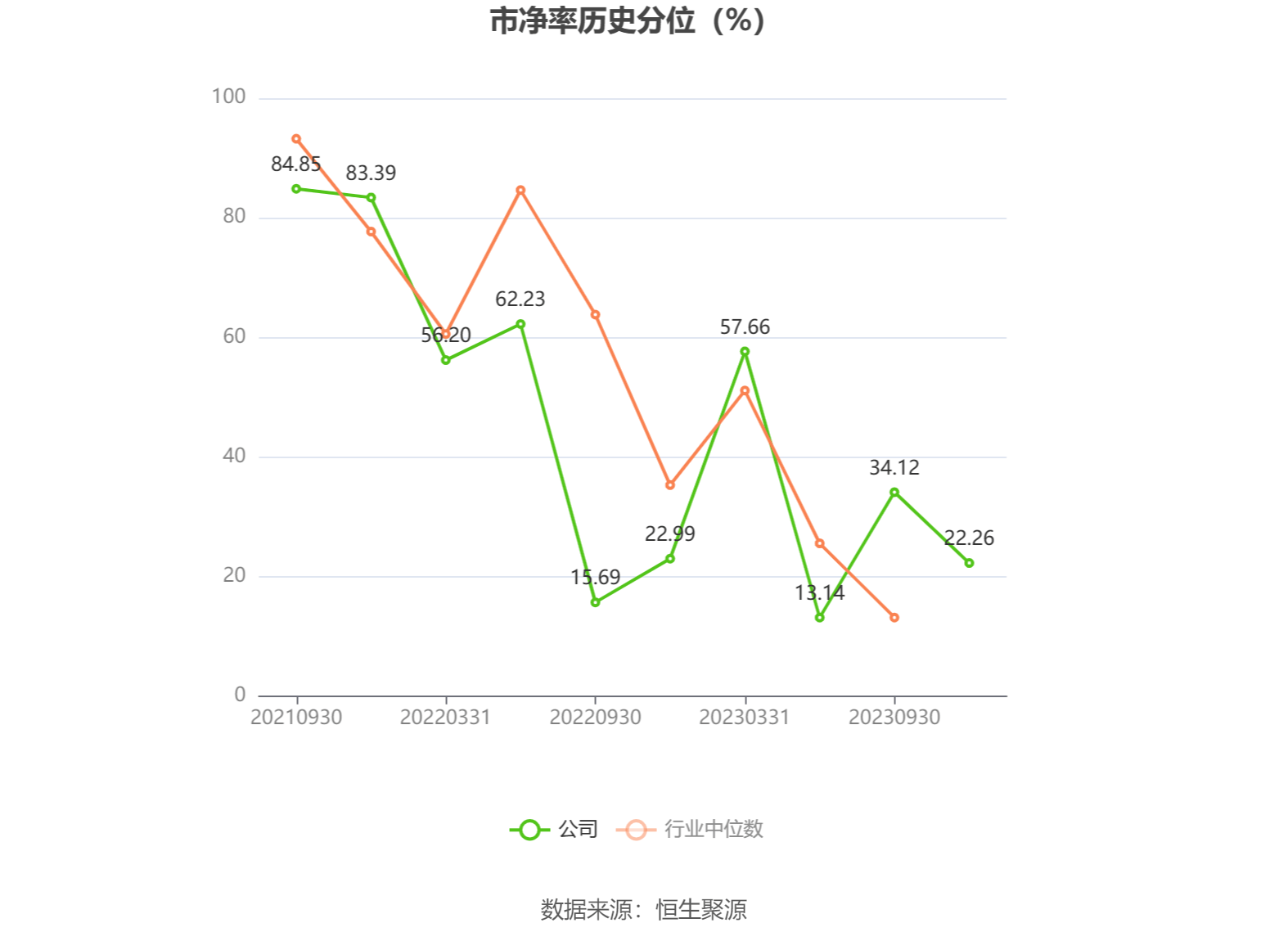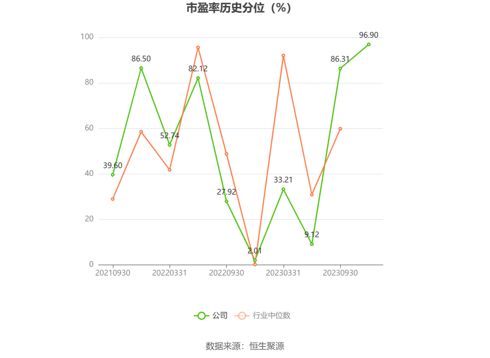 市盈率为负时,不显示当期分位数,会导致折线图中断。