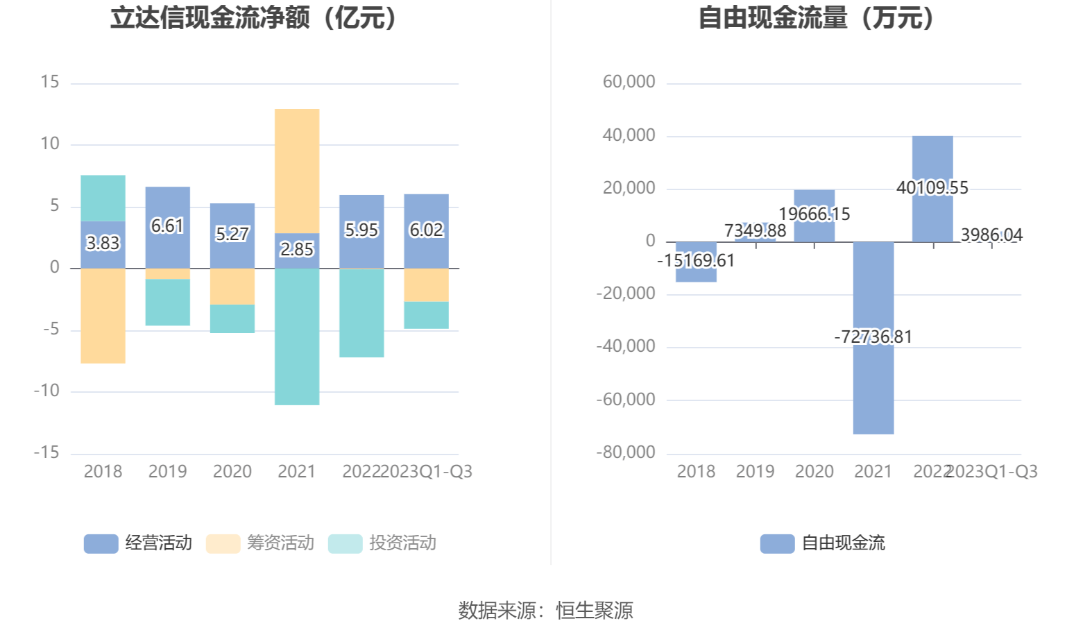 2023年前三季度,公司经营活动现金流净额为6.02亿元,同比下降14.65%;筹资活动现金流净额-2.69亿元,同比减少2.84亿元;投资活动现金流净额-2.20亿元,上年同期为-4.65亿元。