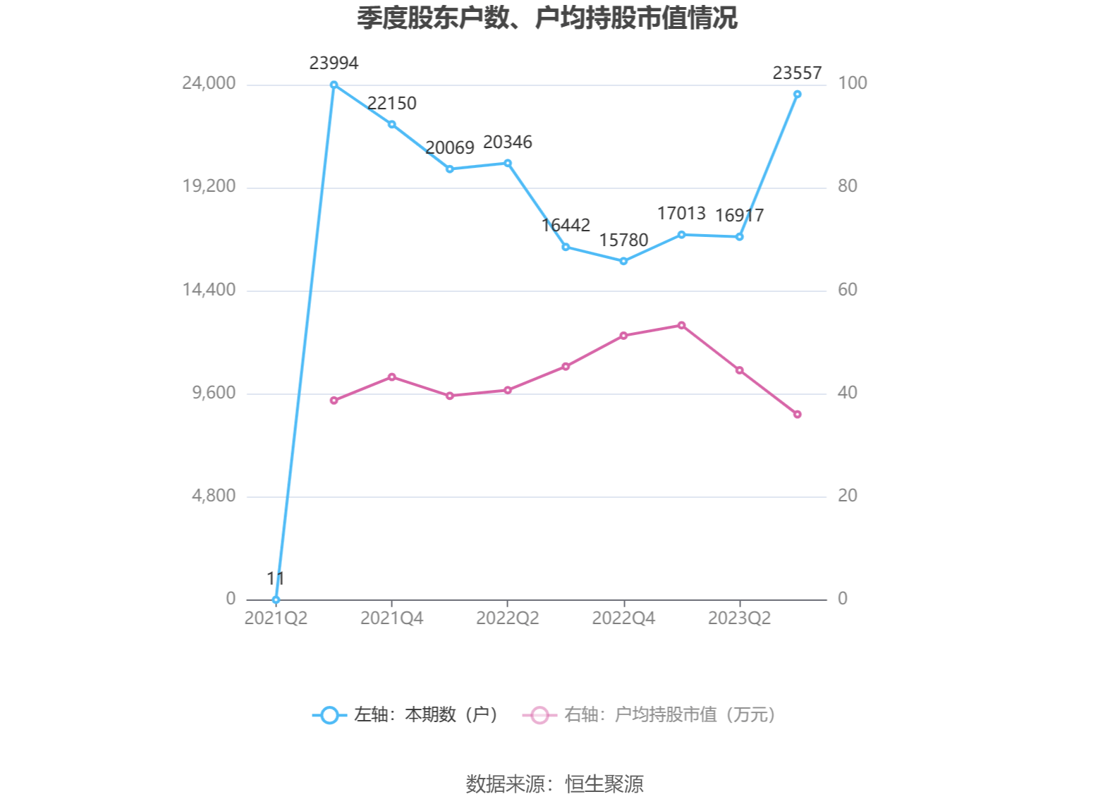 筹码集中度方面,截至2023年三季度末,公司股东总户数为2.36万户,较上半年末增长了6640户,增幅39.25%;户均持股市值由上半年末的44.58万元下降至36.02万元,降幅为19.20%。