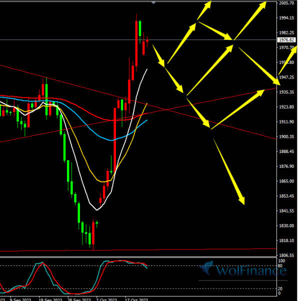 国际黄金周一(10月23日)维持震荡走势,开盘价1965.38美元/盎司,最高价1982.63美元/盎司,最低价1964.15美元/盎司,收盘价1975.15美元/盎司。