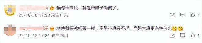 一位四川网友的比喻非常通俗易懂,“就像买冰红茶一样,不是小瓶买不起,而是大瓶更有性价比”。现在的年轻人消费,可以买贵的,但是不能买贵了,处处都注重性价比。