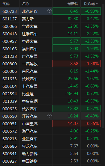 北汽蓝谷跌约7%,赛力斯跌超3%。